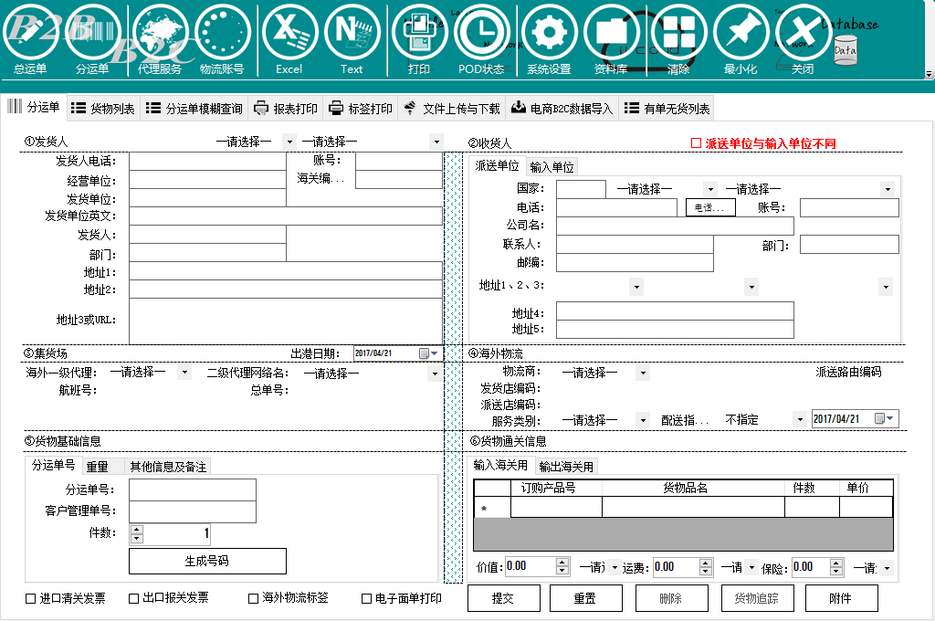 e.出口各类货物信息单证界面及部分细节界面