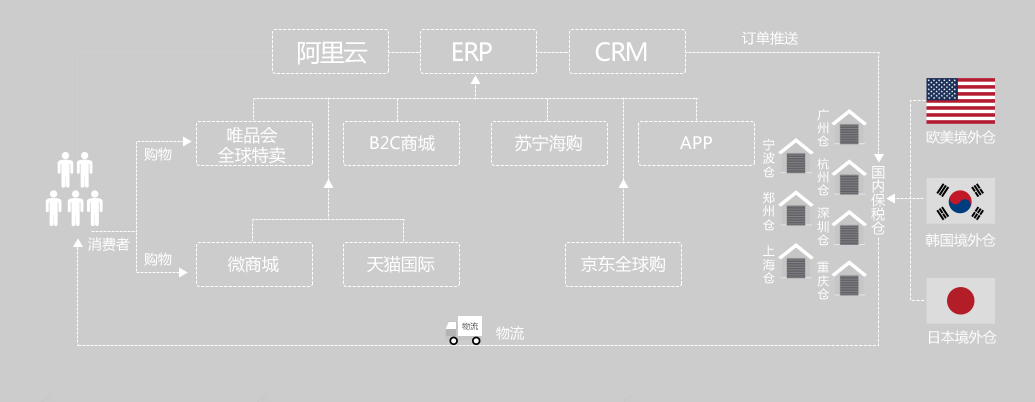 b.国内保税库(国内境外仓,货物保税仓储,通过线上零售后,线上单票行邮申报(免去商检、检验检疫等环节),可能增收行邮税后发货,要求:线上平台交易平台系统、海关系统、支付系统、检验检疫系统实现对接)